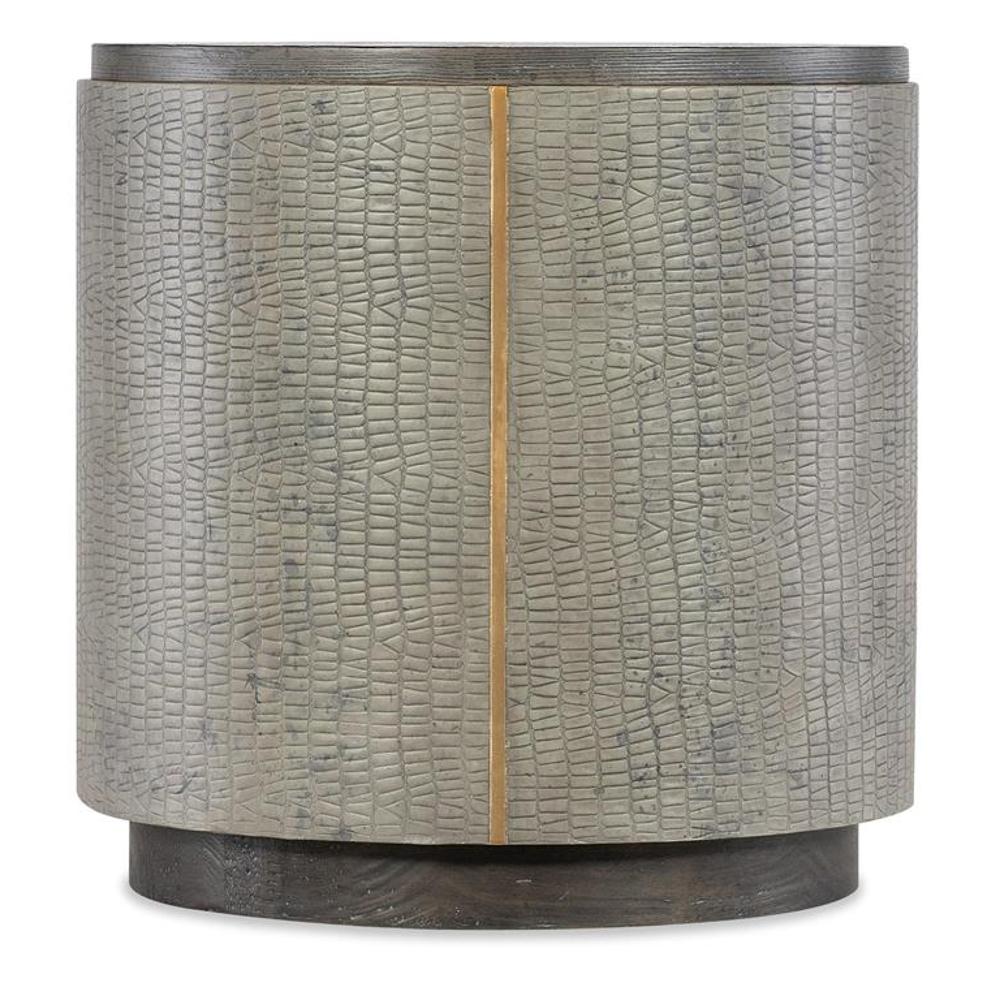 The Dylian end table gives safari vibes with the faux crocodile skin, a gold stripe and grey finishes.