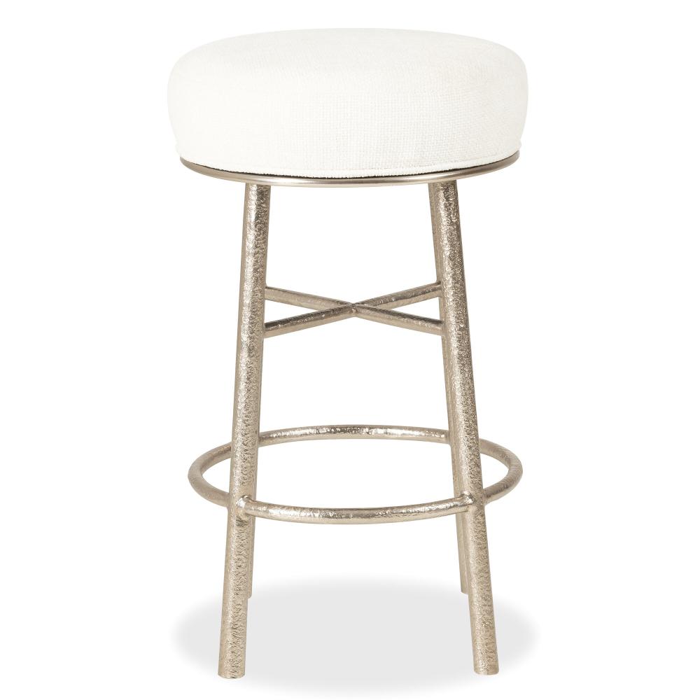 Part of the Melange Collection, this Bistro Stool is elegant with it’s plush seat and hammered metal texture.